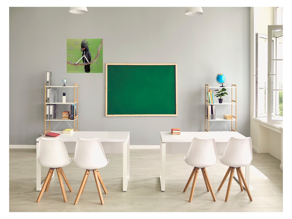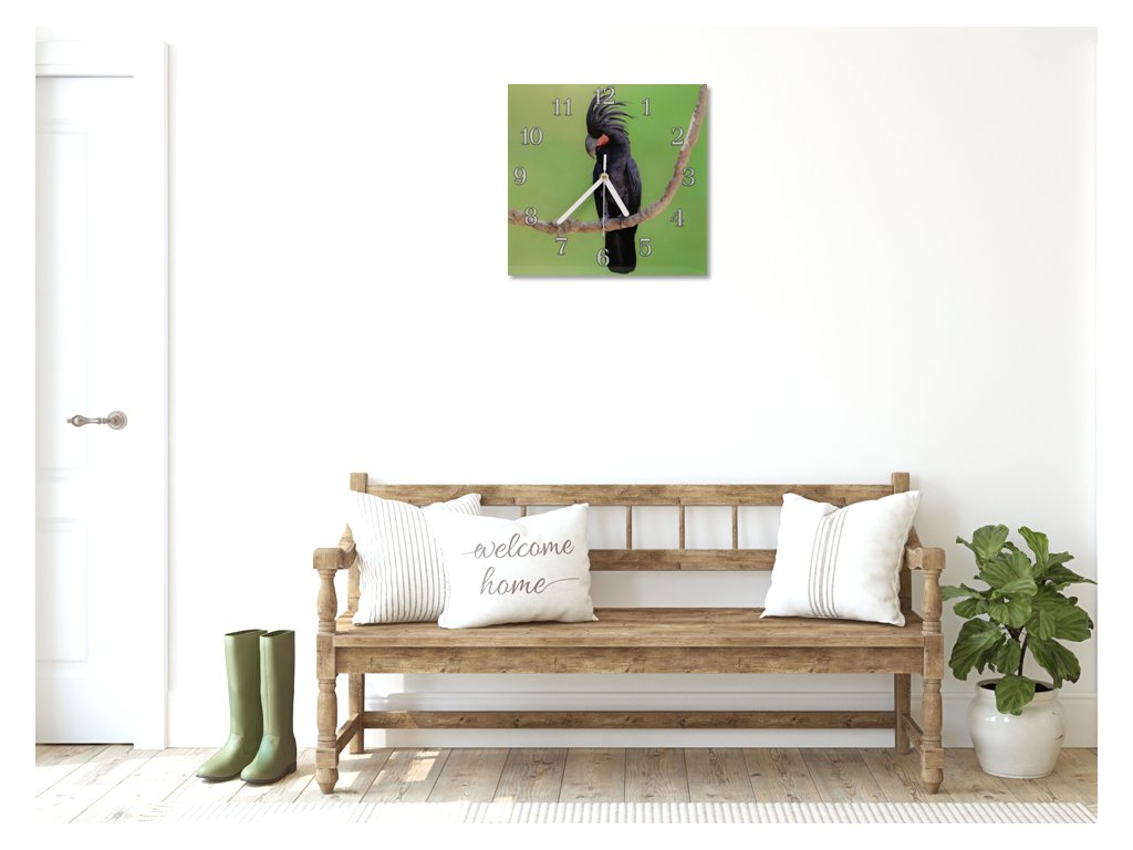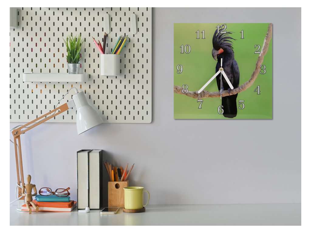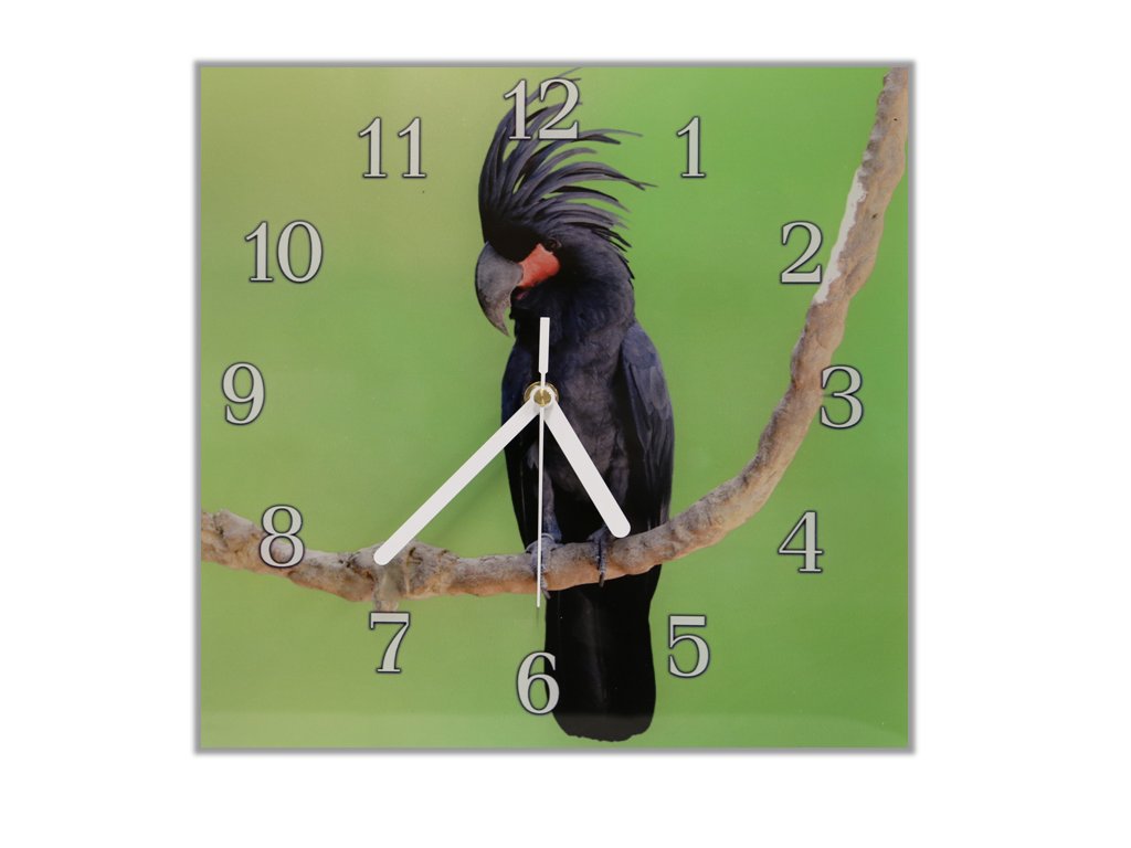 Nástěnné hodiny 30x30cm papoušek kakadu palmový