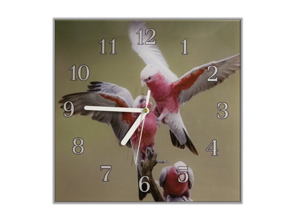 Nástěnné hodiny 30x30cm papoušek kakadu růžový