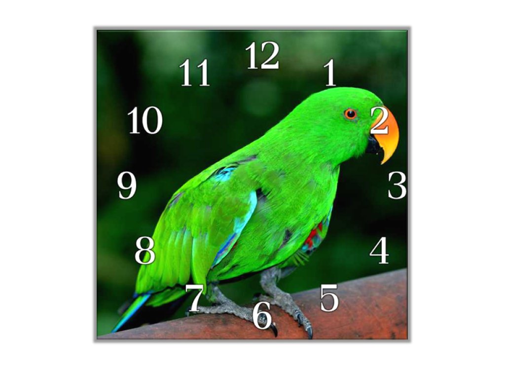 Nástěnné hodiny 30x30cm papoušek zelený eklektus samec
