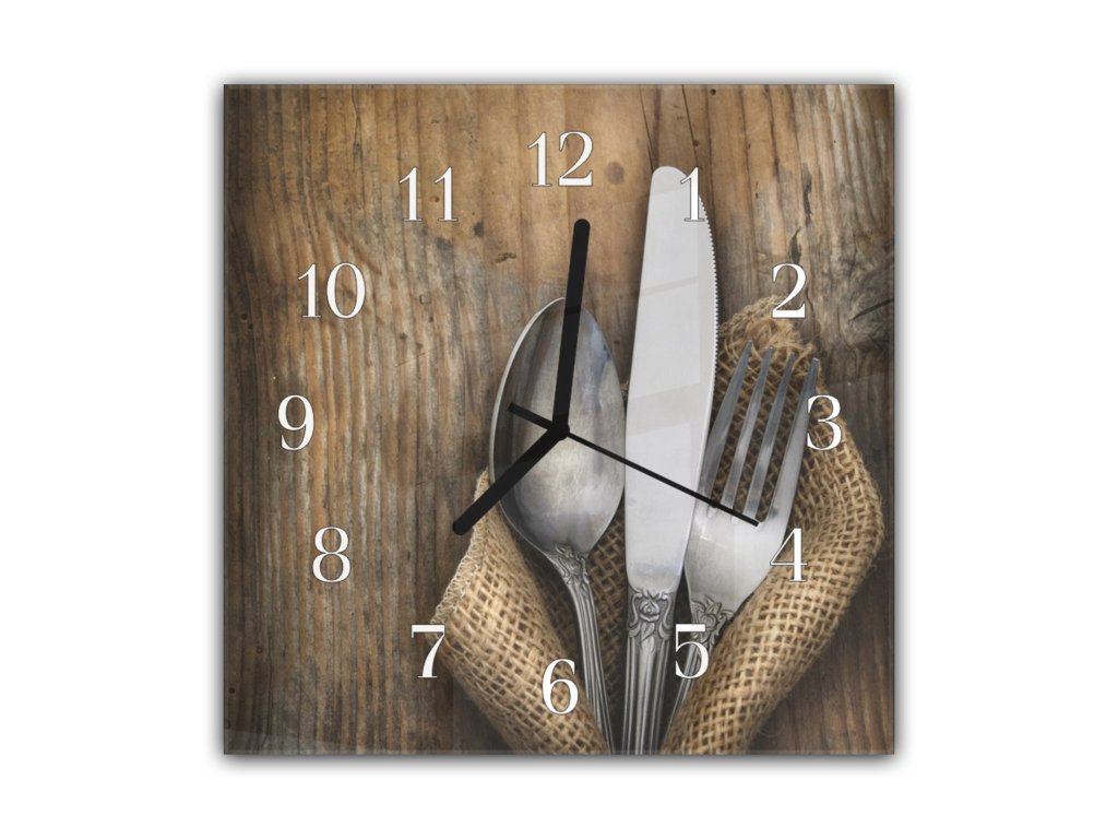 Nástěnné hodiny 30x30cm příbor na dřeve