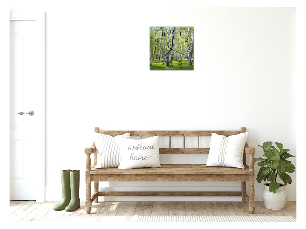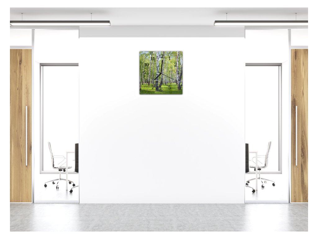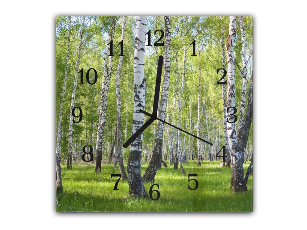 Nástěnné hodiny 30x30cm příroda břízový les