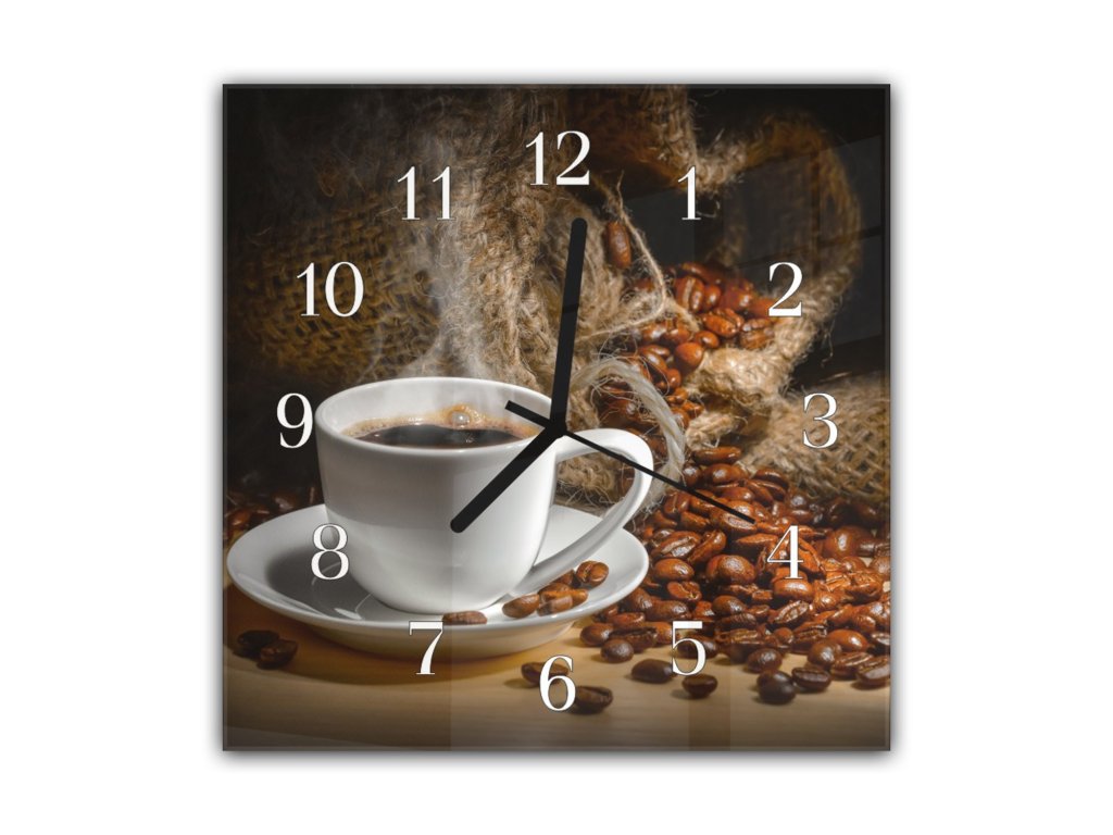 Nástěnné hodiny 30x30cm rozsypaná káva, bílý šálek