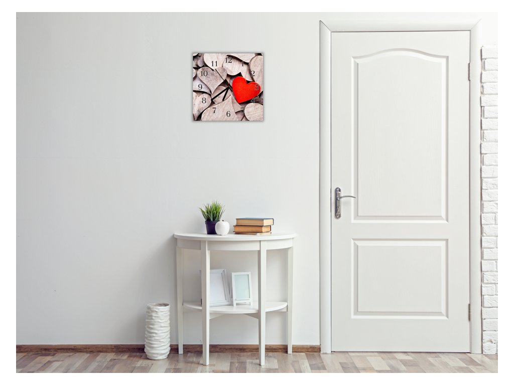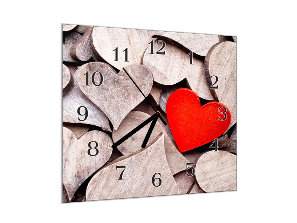 Nástěnné hodiny 30x30cm rustikální srdce červené a šedé