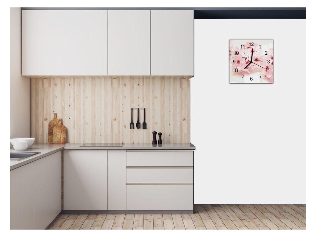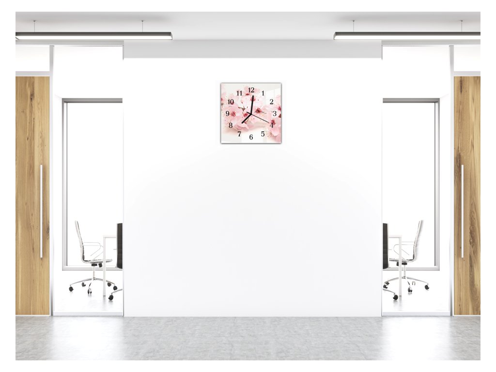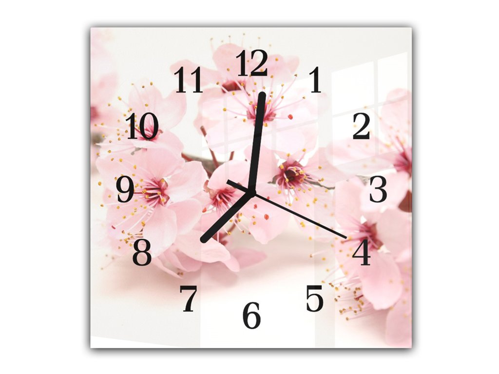 Nástěnné hodiny 30x30cm růžové květy ovocného stromu