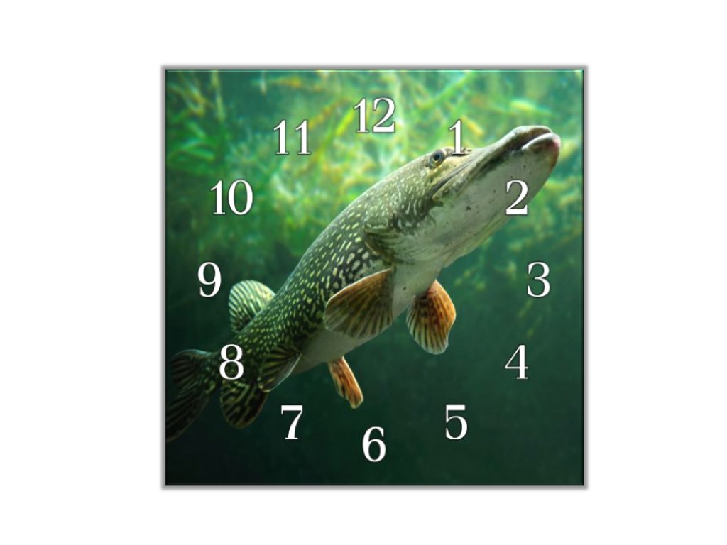 Nástěnné hodiny 30x30cm ryba štika