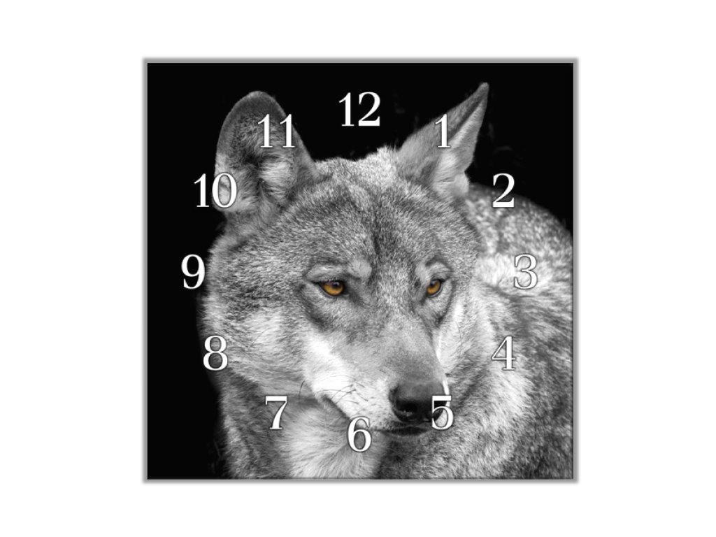 Nástěnné hodiny 30x30cm šedý vlk