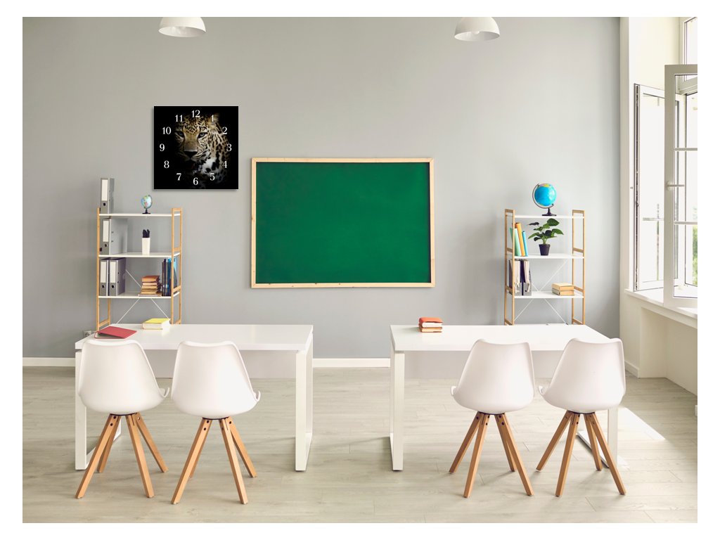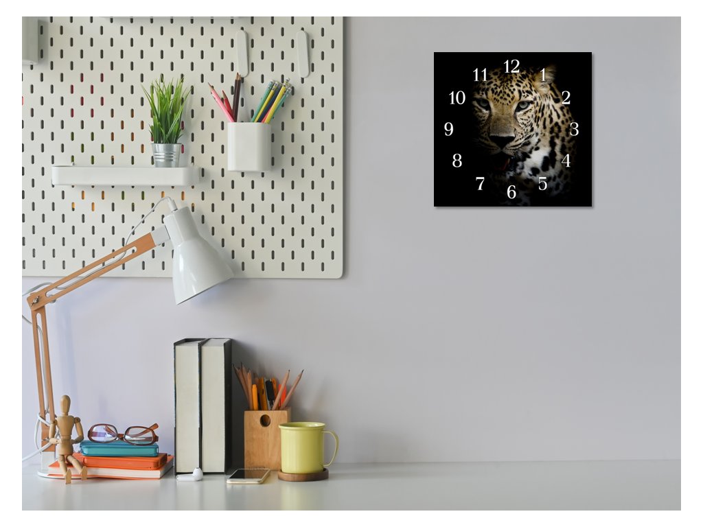 Nástěnné hodiny 30x30cm šelma leopard