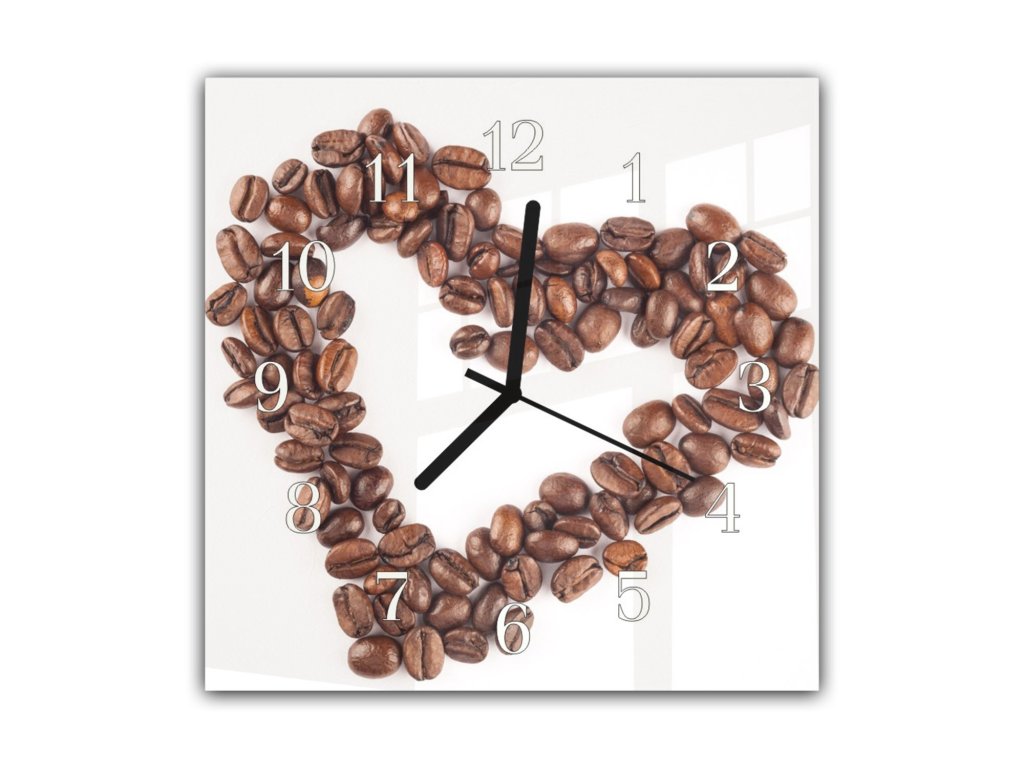 Nástěnné hodiny 30x30cm srdce ze zrn kávy