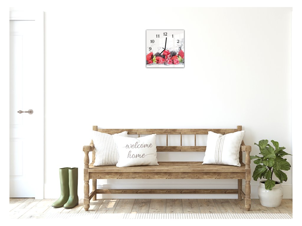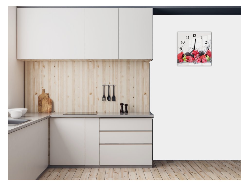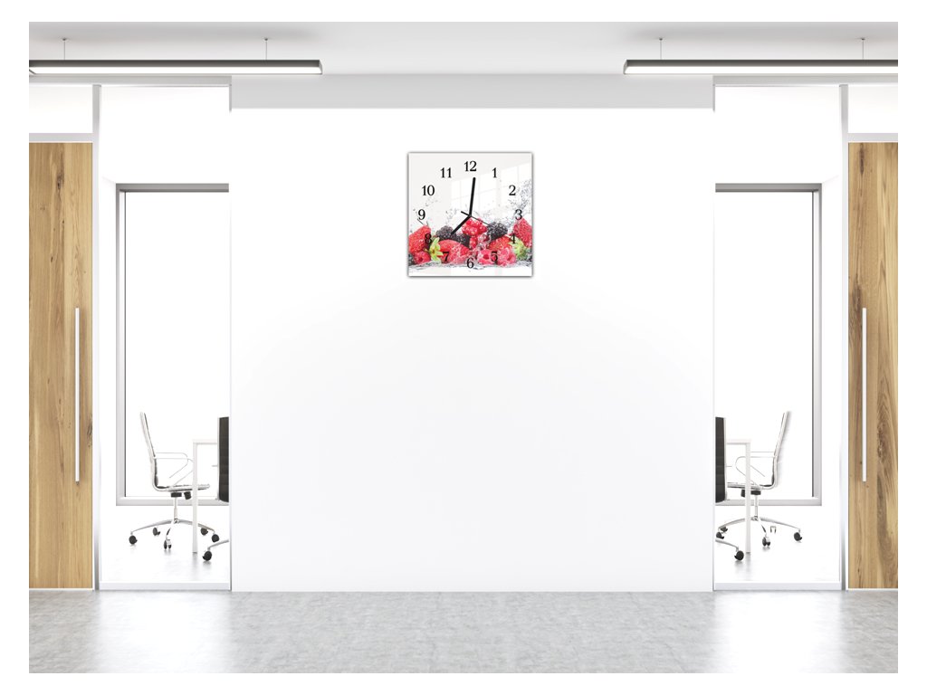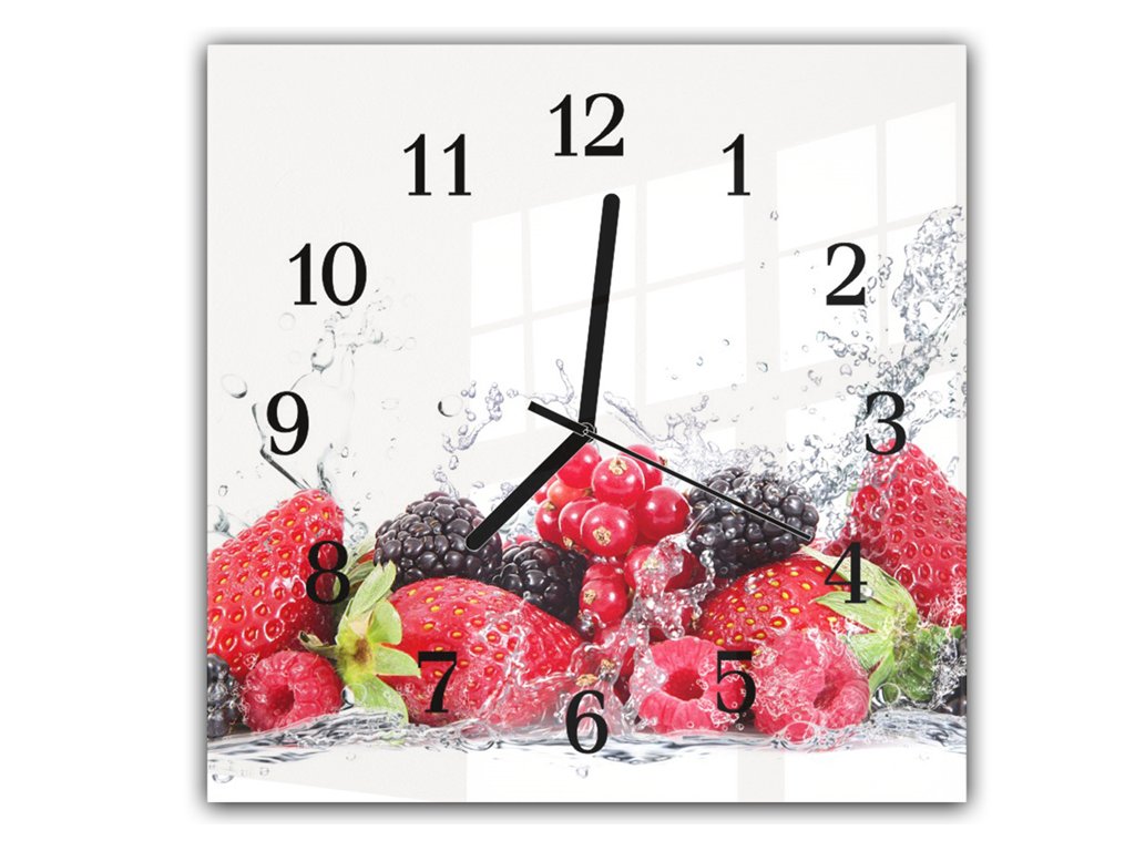 Nástěnné hodiny 30x30cm svěží ovoce ve vodě na bílém podkladu
