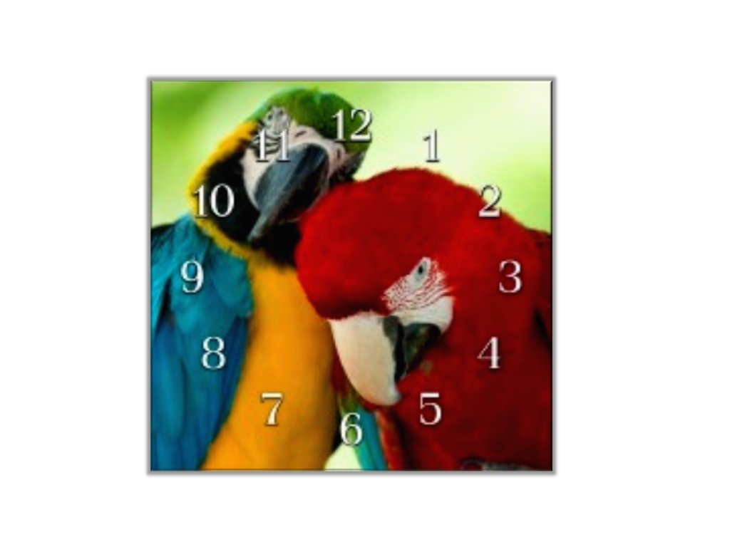 Nástěnné hodiny 30x30cm tulící se papoušek ara