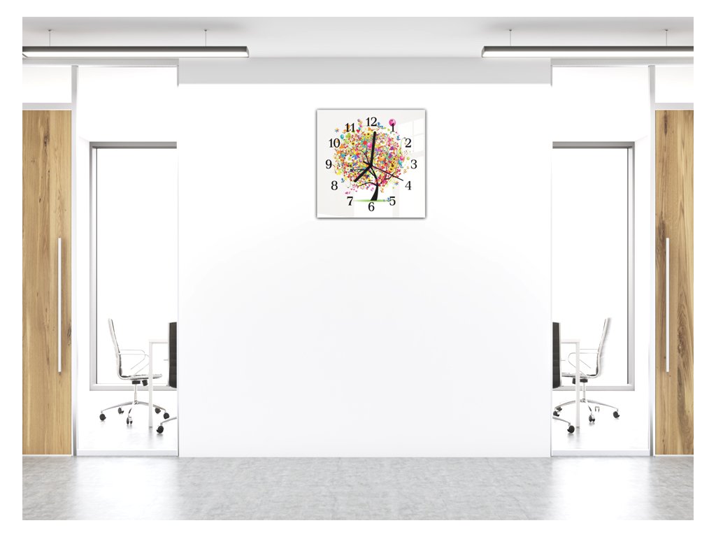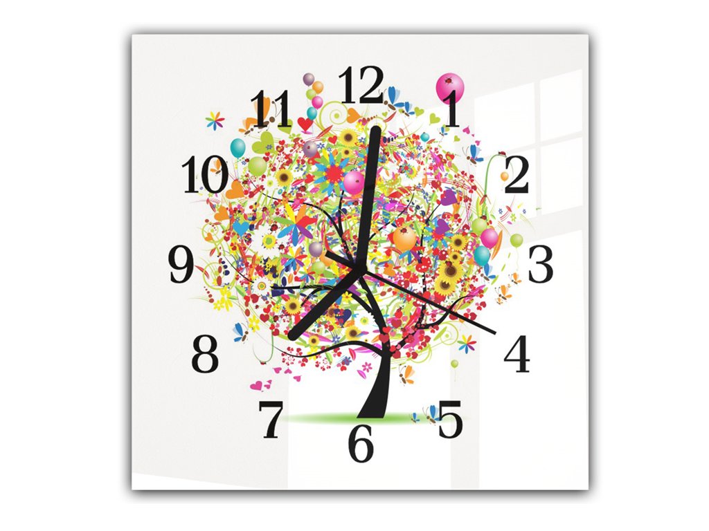 Nástěnné hodiny 30x30cm veselý barevný strom s balónky