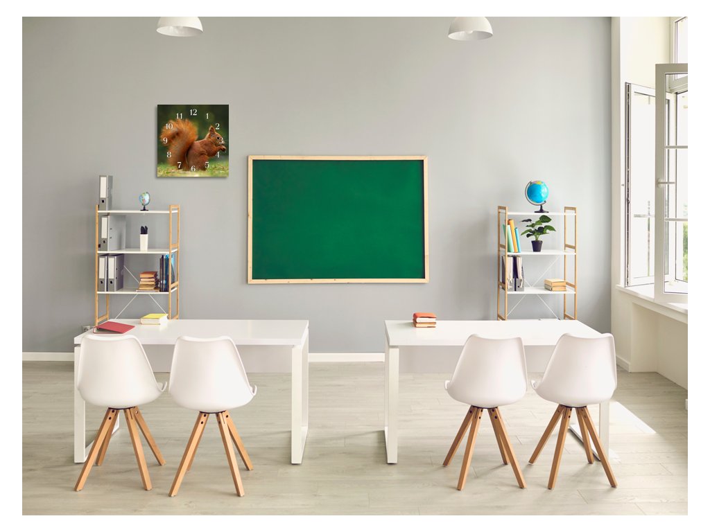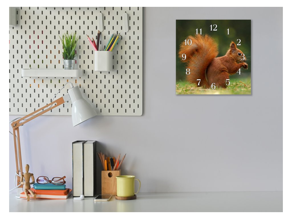 Nástěnné hodiny 30x30cm veverka