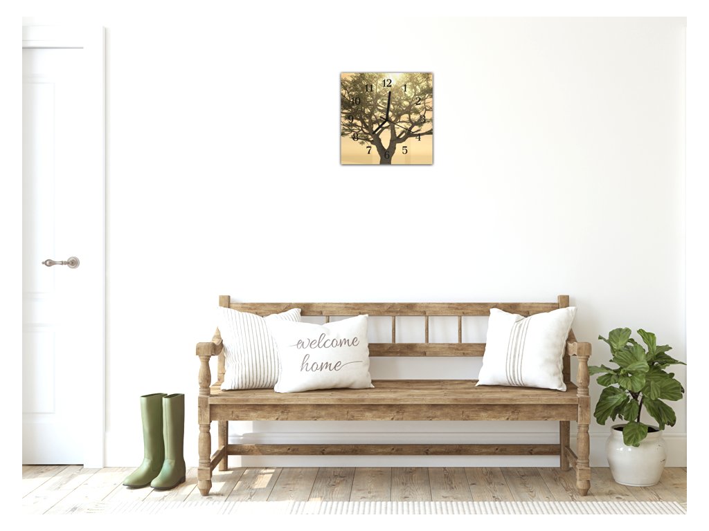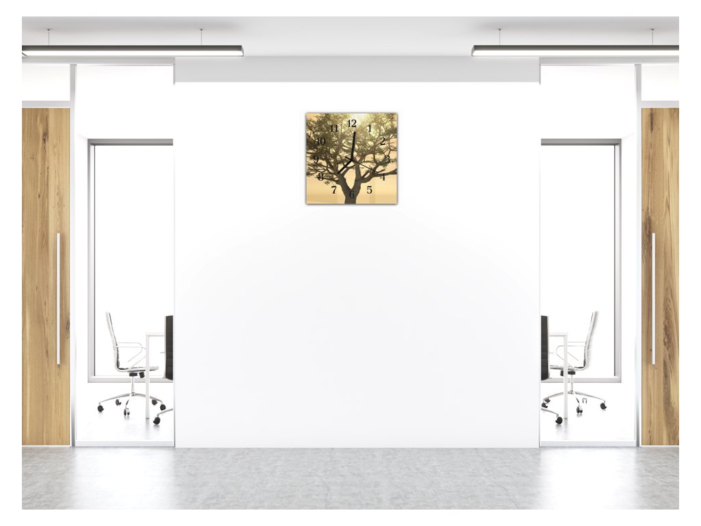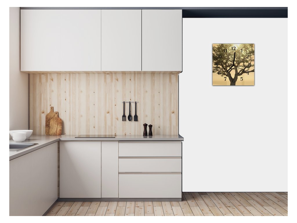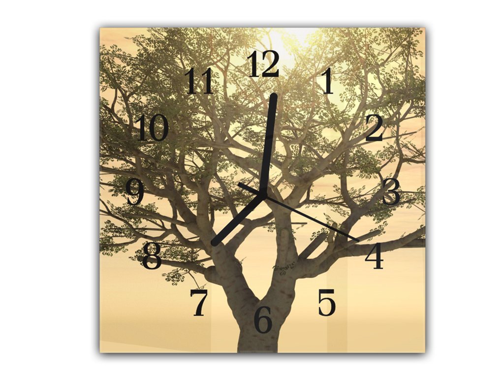 Nástěnné hodiny 30x30cm západ slunce v koruně stromu