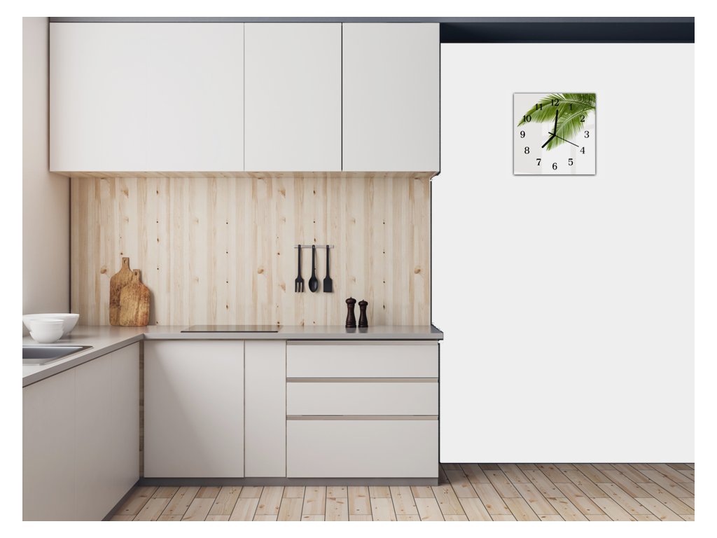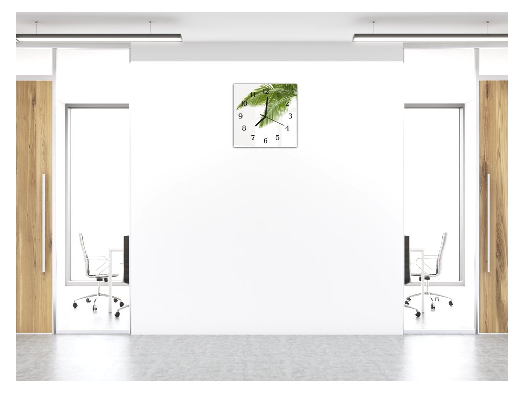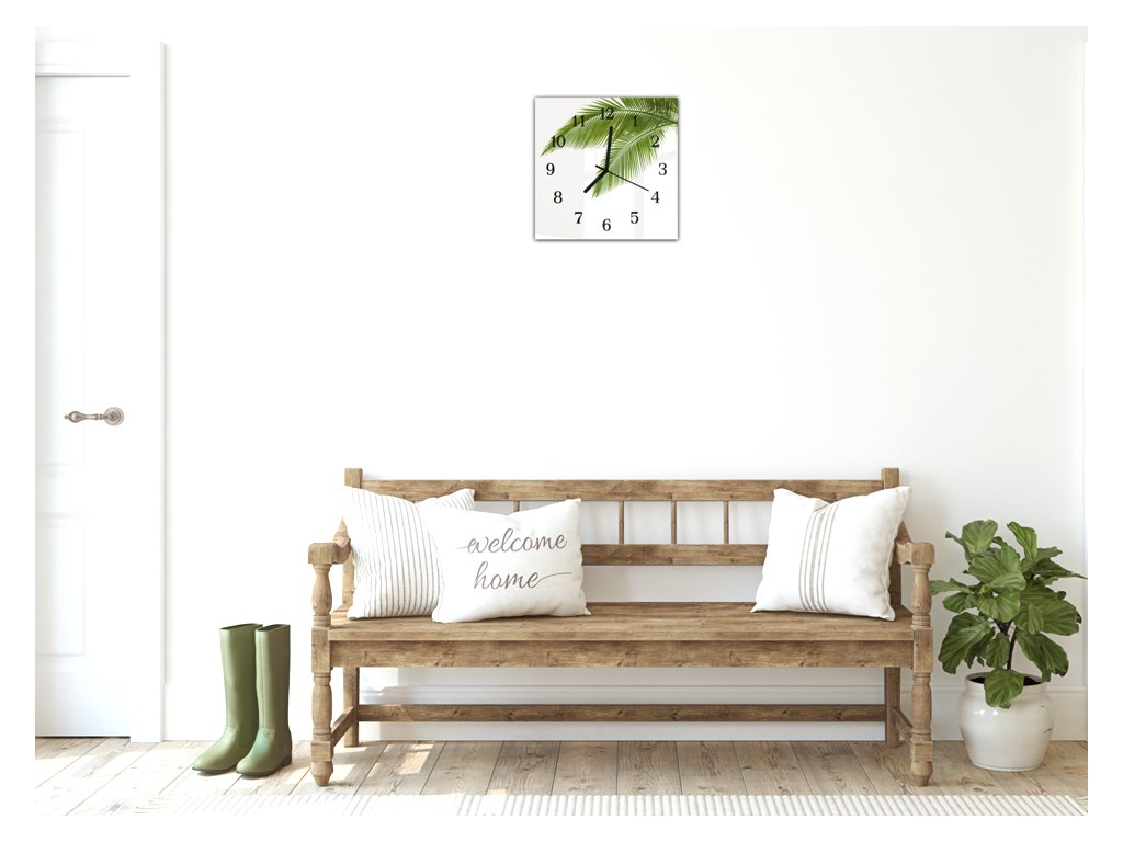 Nástěnné hodiny 30x30cm zelené palmové listy