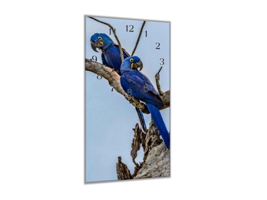 Nástěnné hodiny 30x60cm ara hyacintová na větvi