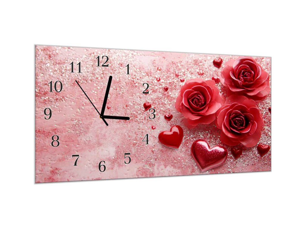 Nástěnné hodiny 30x60cm aranžmá růží a srdíček