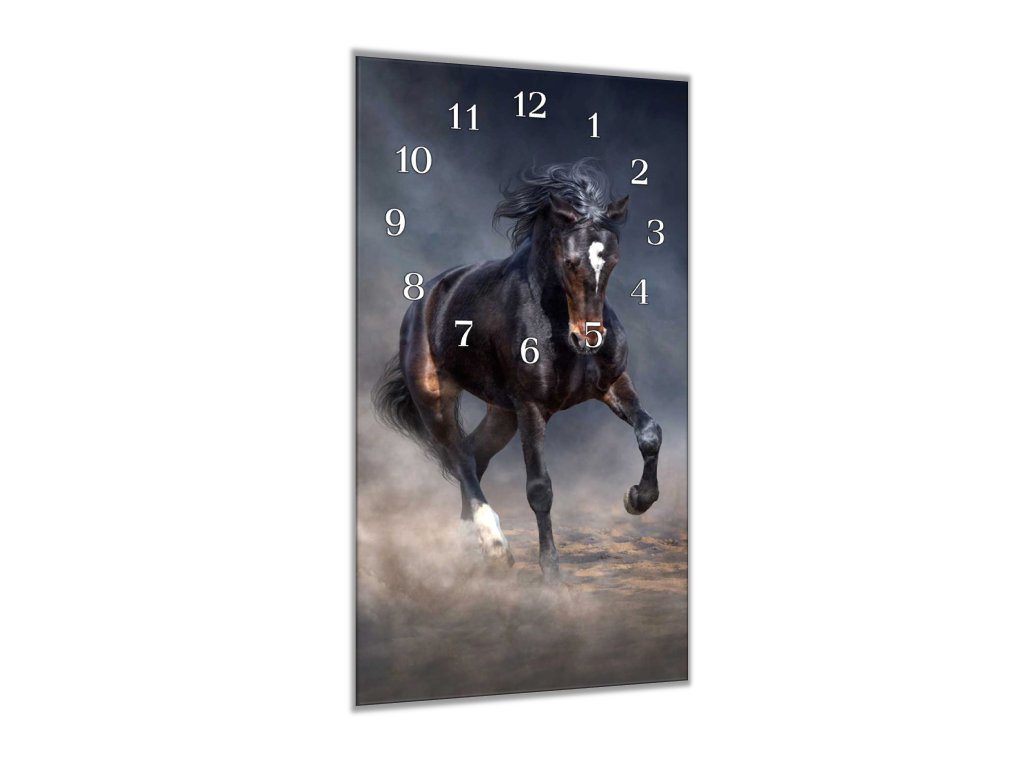 Nástěnné hodiny 30x60cm černý kůň v klusu