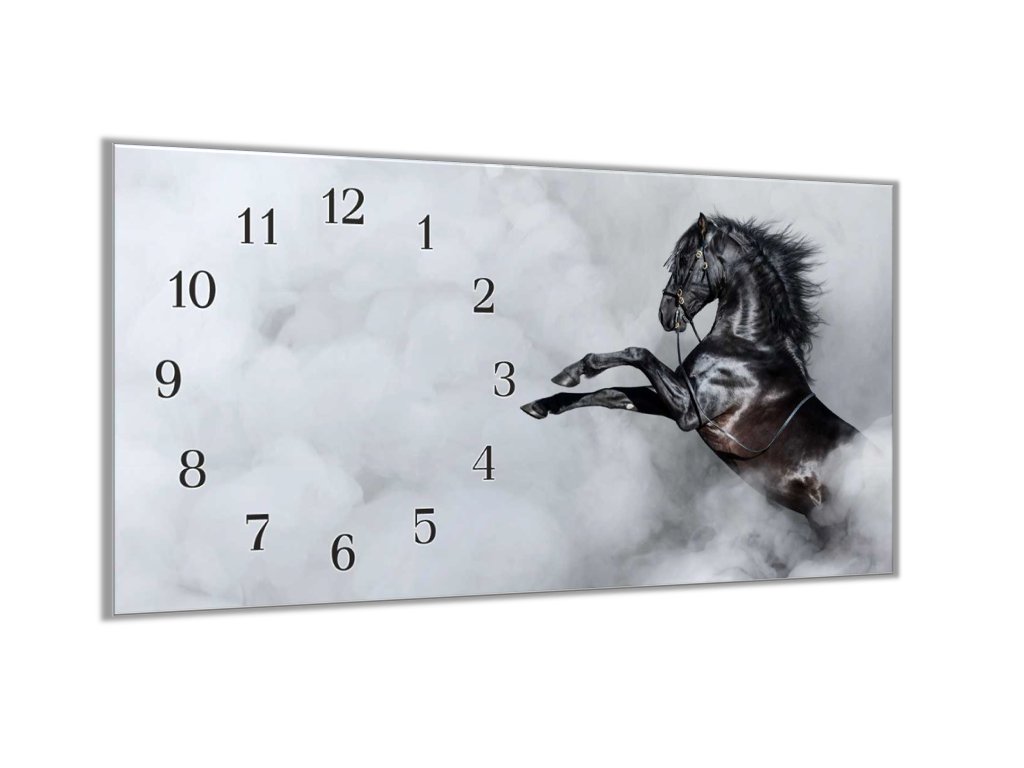 Nástěnné hodiny 30x60cm černý španělský kůň