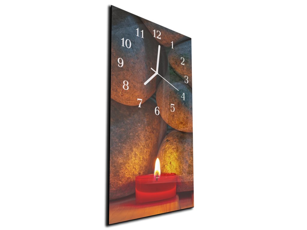 Nástěnné hodiny 30x60cm červená svíce a kameny