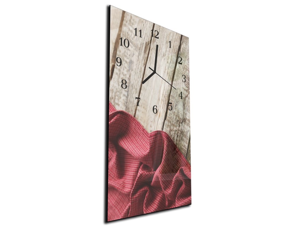 Nástěnné hodiny 30x60cm červená utěrka na dřevě