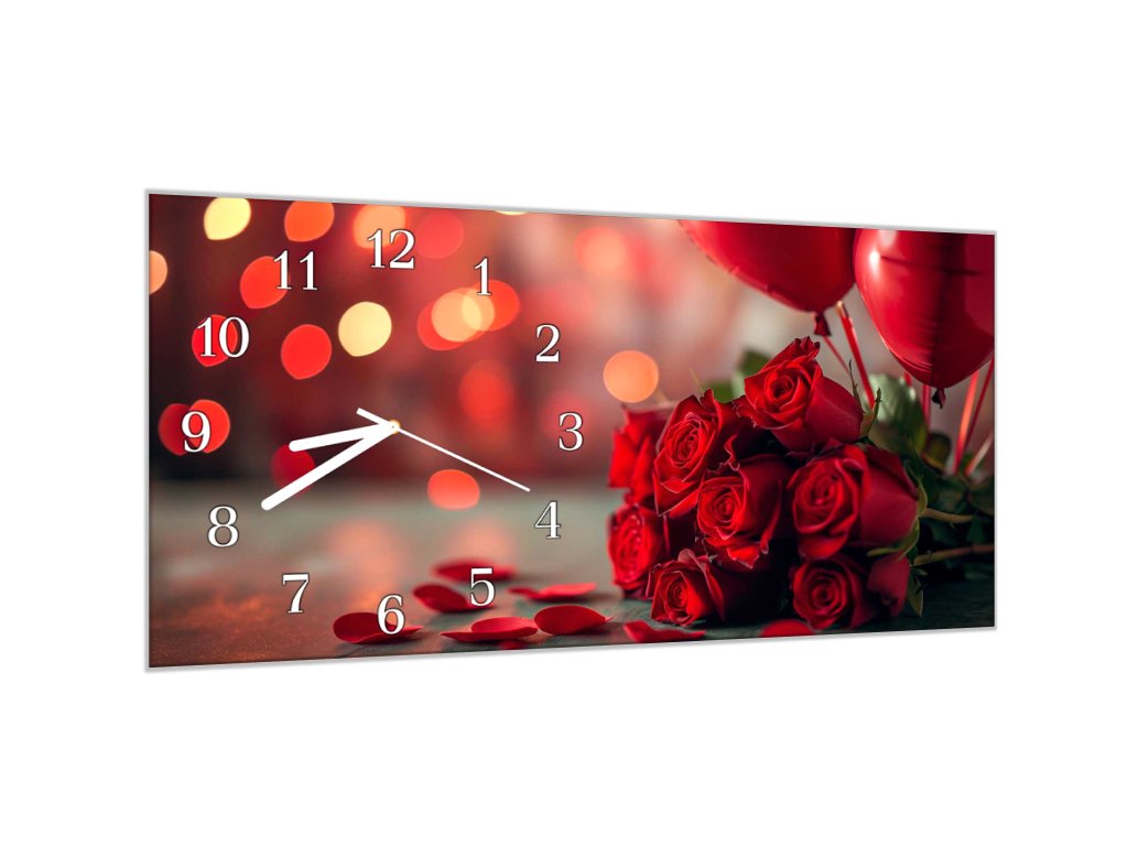 Nástěnné hodiny 30x60cm červené růže a balónky
