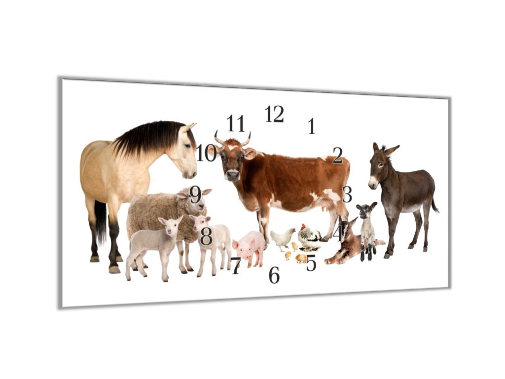 Nástěnné hodiny 30x60cm domácí zvířata farma