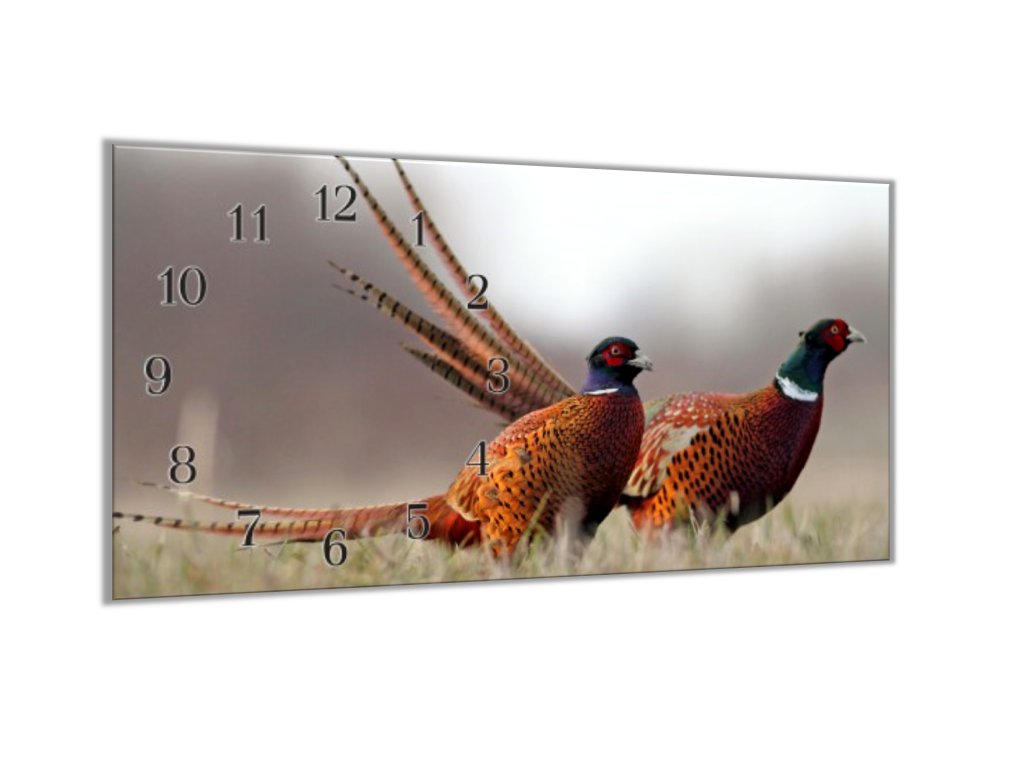 Nástěnné hodiny 30x60cm dva bažanti na louce