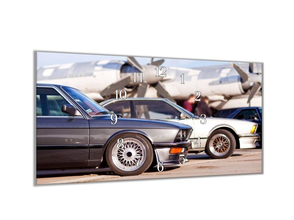 Nástěnné hodiny 30x60cm dvě auta veterán