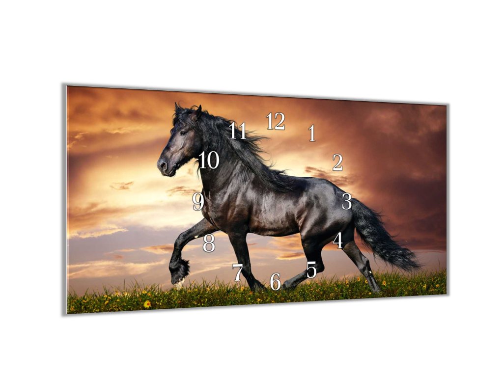 Nástěnné hodiny 30x60cm fríský kůň v klusu