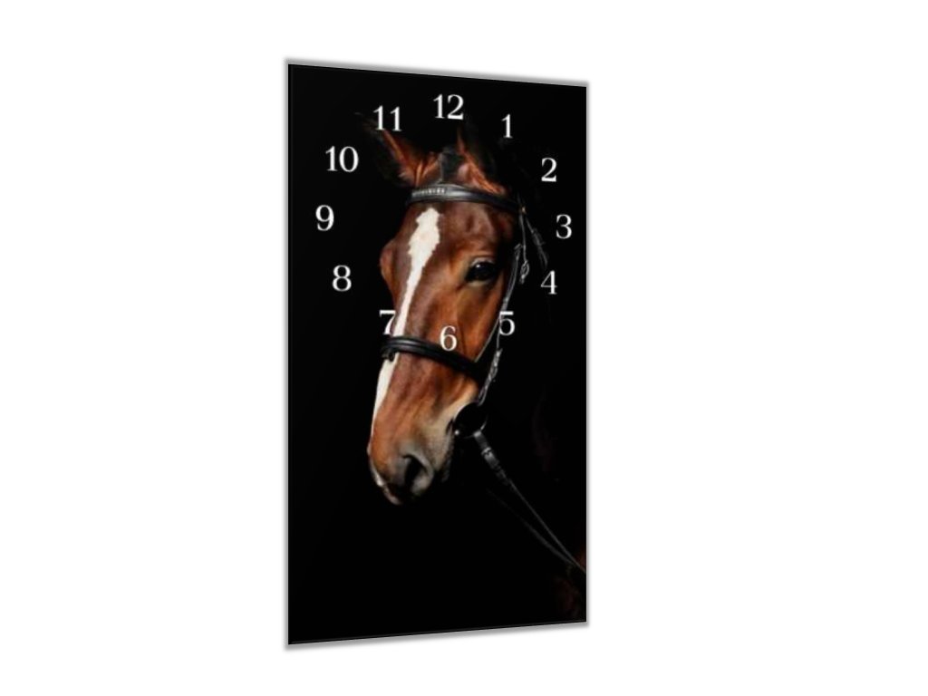 Nástěnné hodiny 30x60cm hlava koně s lysinou