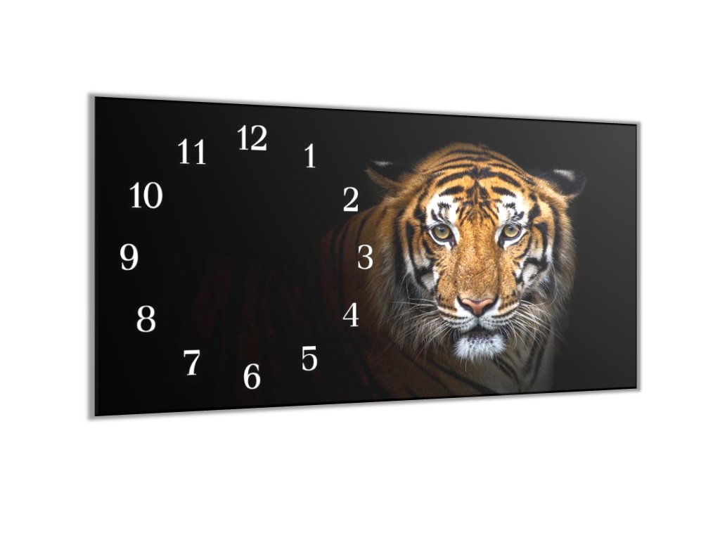 Nástěnné hodiny 30x60cm hlava zlatý tygr