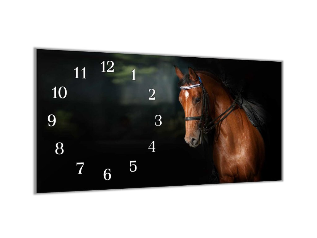 Nástěnné hodiny 30x60cm hnědý kůň