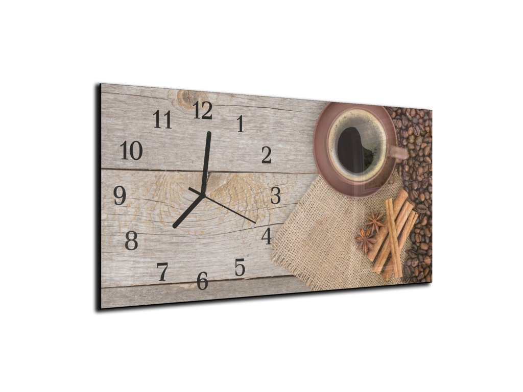 Nástěnné hodiny 30x60cm hrníček, káva, skořice, badyán