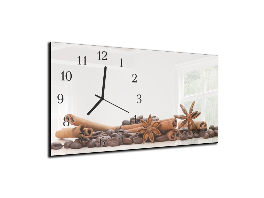 Nástěnné hodiny 30x60cm káva, koření, bílé pozadí