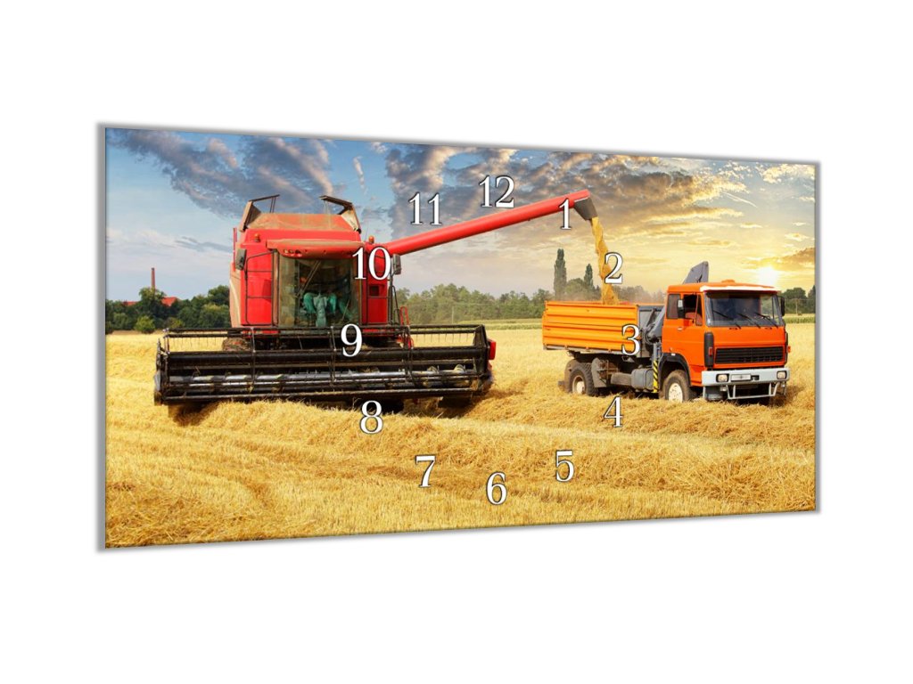 Nástěnné hodiny 30x60cm kombajn a Liaz na poli