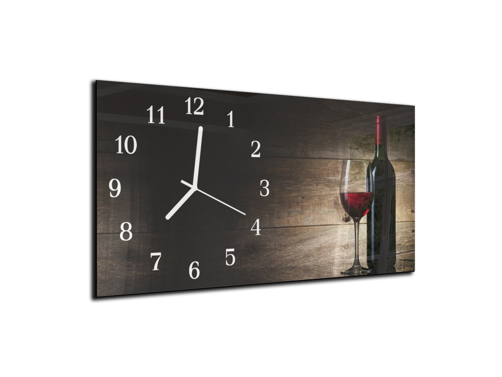 Nástěnné hodiny 30x60cm láhev a sklenice červené víno u dřeva