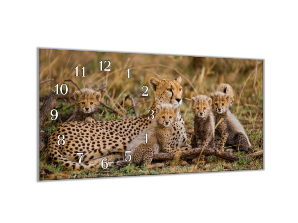 Nástěnné hodiny 30x60cm leopardí samice s mláďaty
