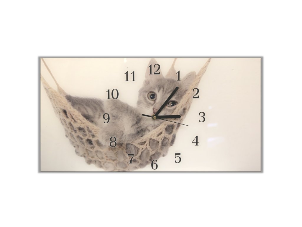 Nástěnné hodiny 30x60cm malá kočka v houpací síti