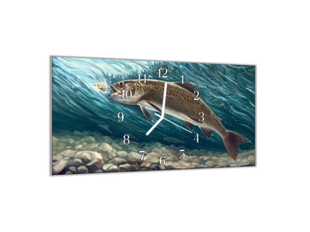 Nástěnné hodiny 30x60cm malovaný pstruh