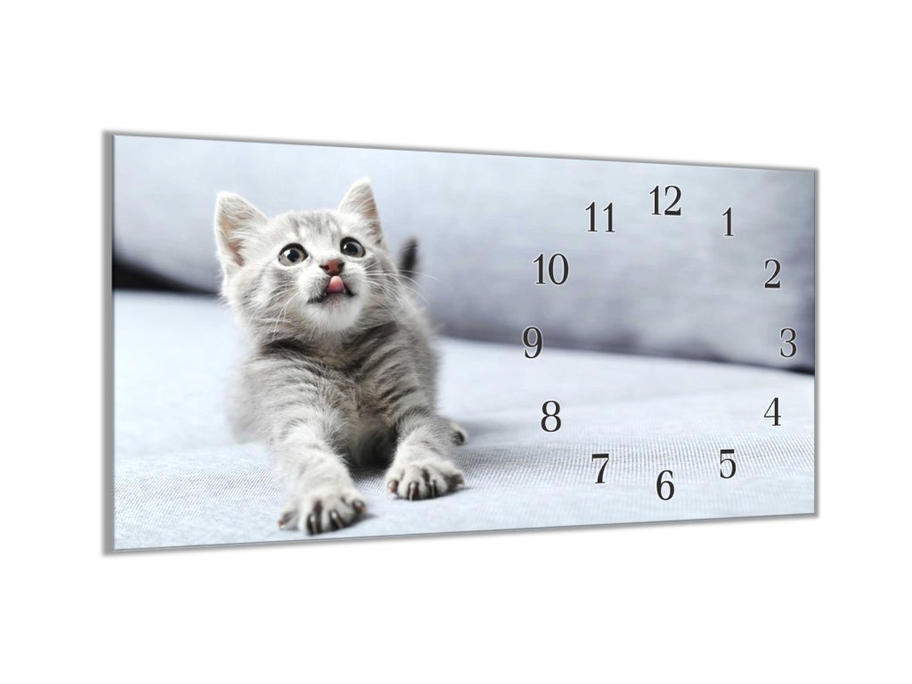 Nástěnné hodiny 30x60cm milé šedé kotě