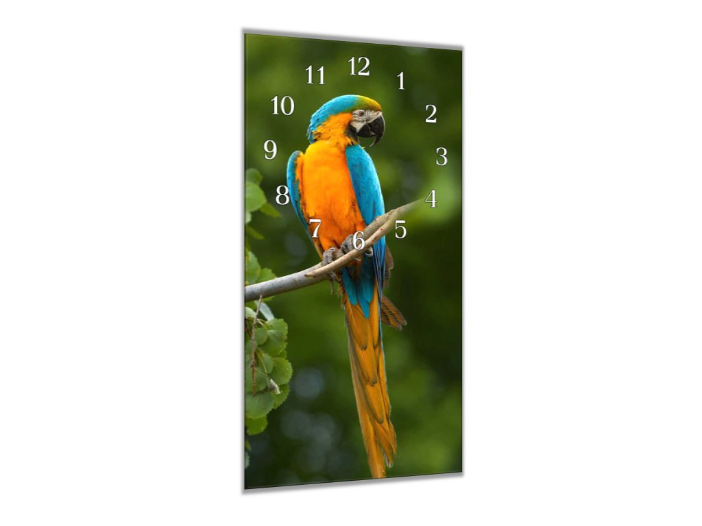Nástěnné hodiny 30x60cm mladý papoušek ara