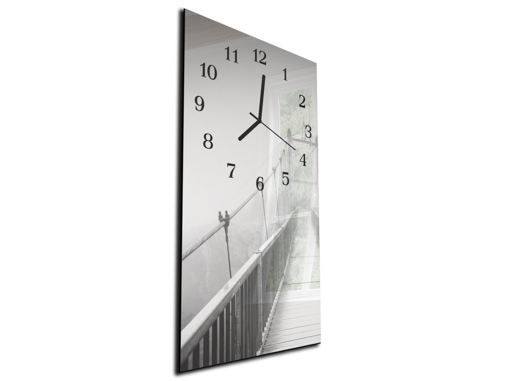 Nástěnné hodiny 30x60cm most v mlze černobílý