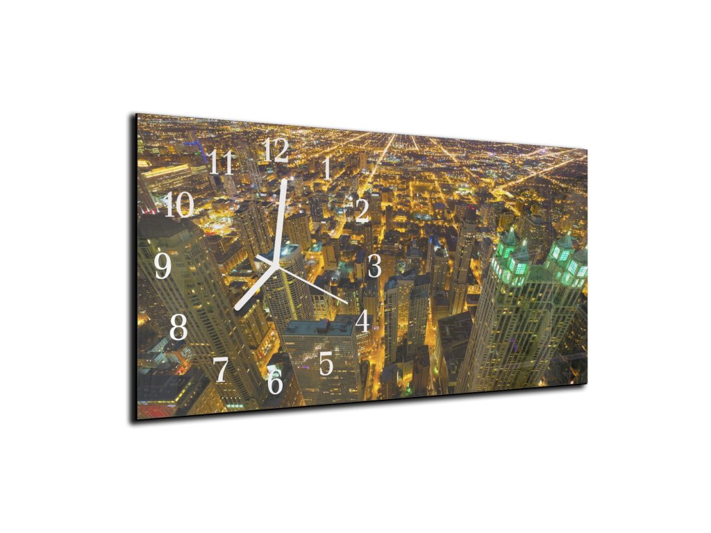 Nástěnné hodiny 30x60cm noční Chicago mrakodrapy