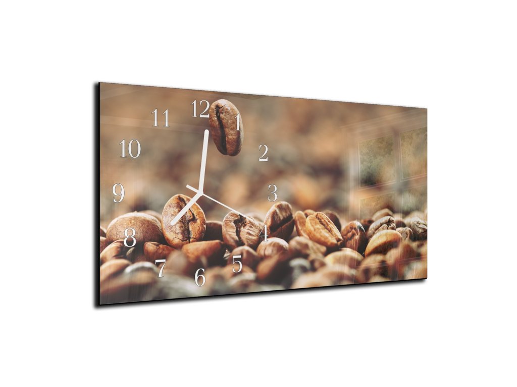 Nástěnné hodiny 30x60cm padající zrna kávy na hnědém podkladu