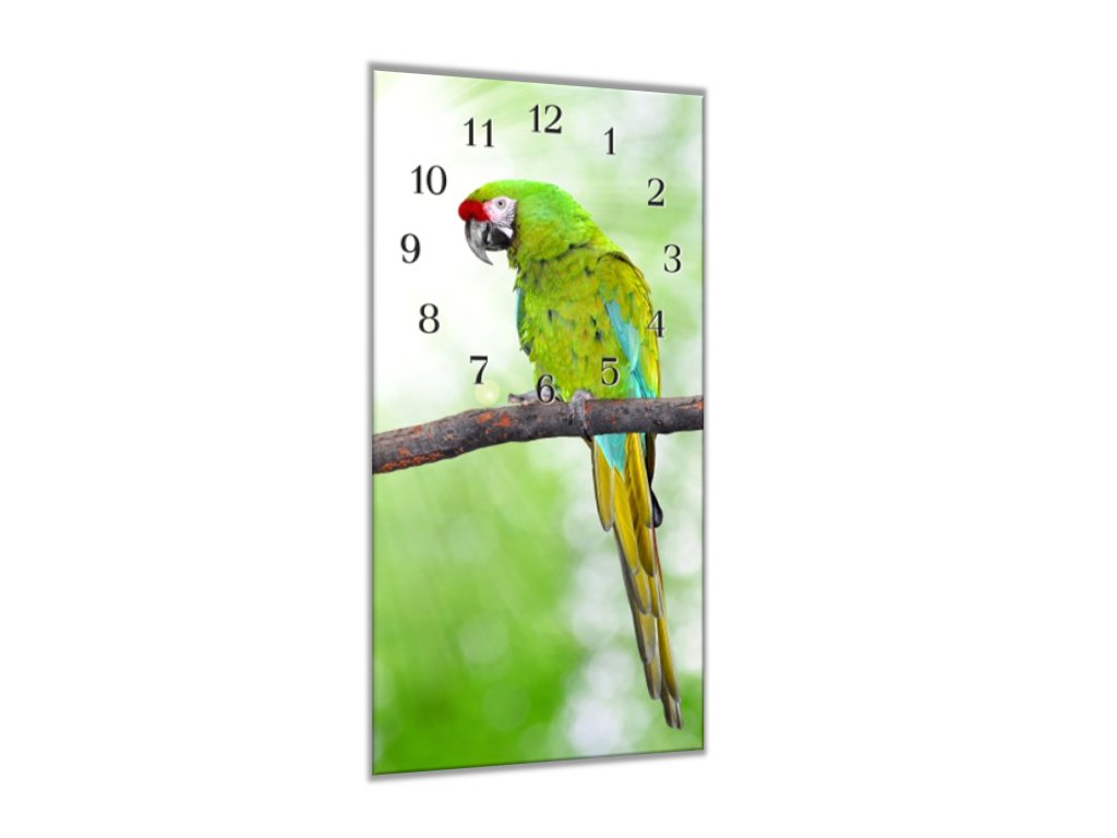 Nástěnné hodiny 30x60cm papoušek ara zelený