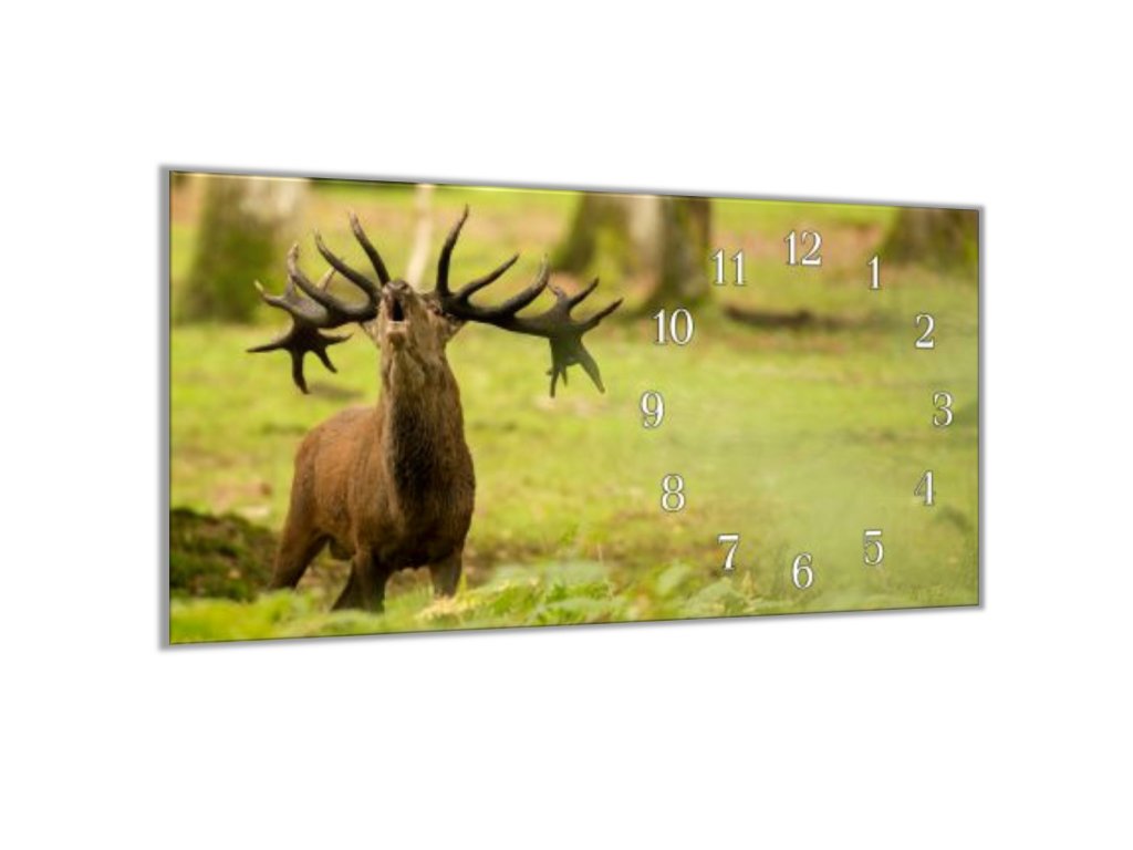 Nástěnné hodiny 30x60cm řvoucí jelen v lese