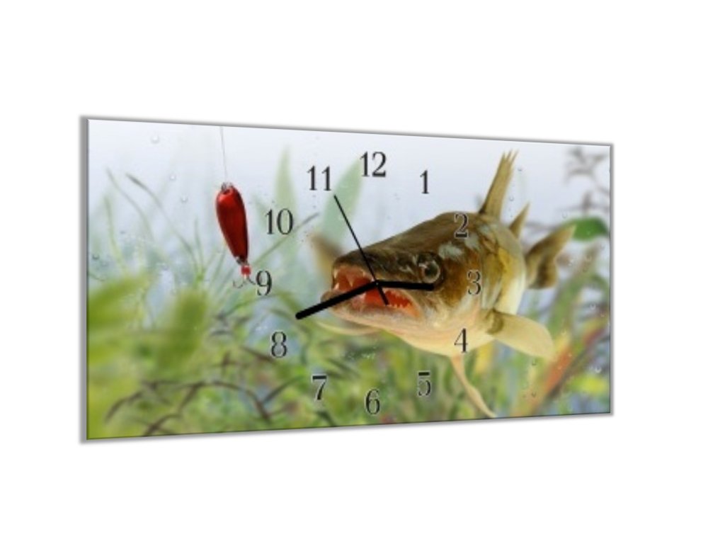 Nástěnné hodiny 30x60cm ryba candát na třpytce