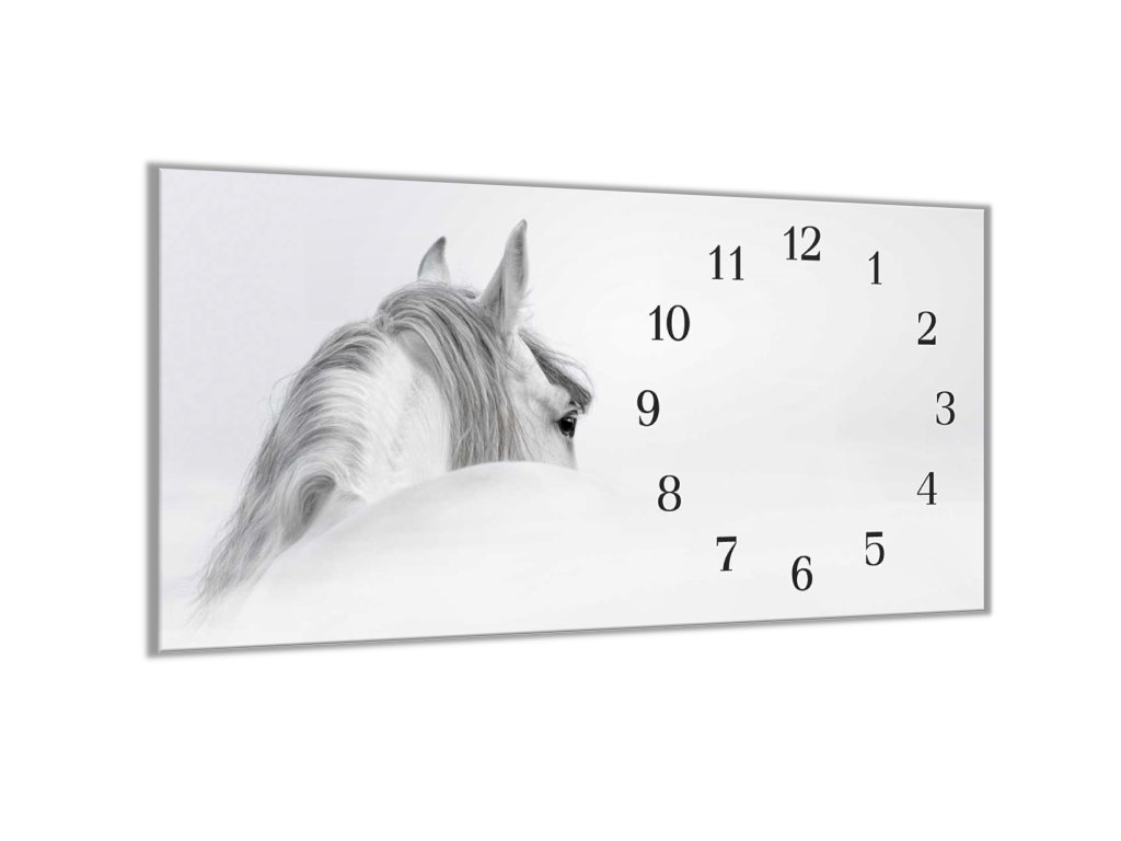 Nástěnné hodiny 30x60cm silueta koně v mlze
