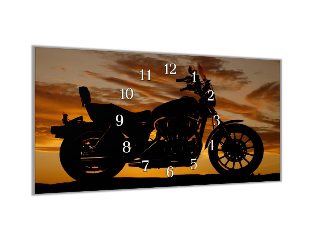 Nástěnné hodiny 30x60cm silueta motorky v západu slunce