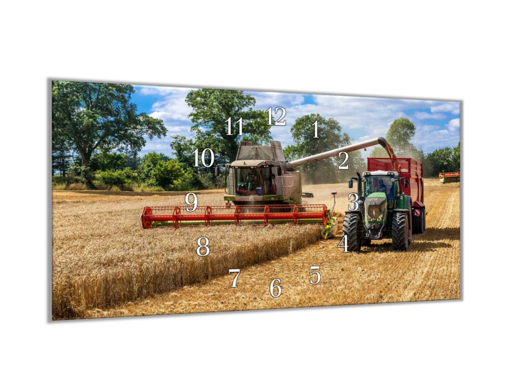 Nástěnné hodiny 30x60cm traktor a kombajn na poli